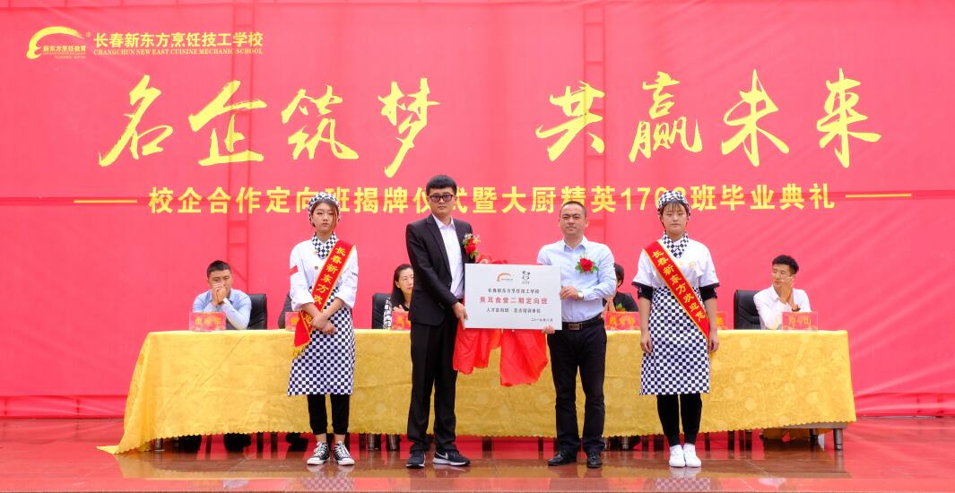 学区负责人与美诺餐饮集团人力资源总监为定向班揭牌